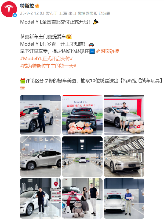 9月2日,特斯拉官方宣布,Model Y L正式开启全国首批交付。新车售价33.9万元,定位大六座豪华纯电SUV。