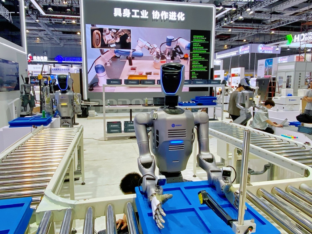 本届工博会上,越疆机器人发布了全球首个多形态具身智能“超级工厂”平台化方案,整个展台就像一座具身智能机器人超级工厂,从高精度协作机器人到“直膝行走+灵巧操作”人形机器人、高机动性多足机器人和轮式人形机器人悉数到岗,勾勒出一幅未来工厂智能生产的全新图景。同时,越疆还展示了将机器人技术与工业制造、商业服务、教育科研等30余个领域深度融合的应用潜力。