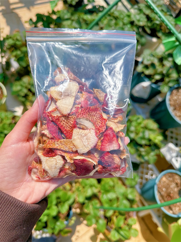 ▲阳台种的草莓制成草莓干 图片来源:小红书