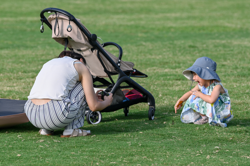 家长给小女孩拍照。澎湃新闻记者 朱伟辉 图