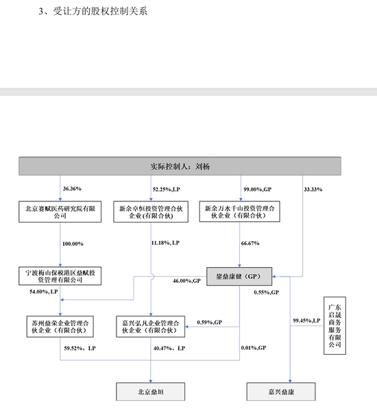 本次交易的接盘方北京鼎垣和嘉兴鼎康受同一实际控制人刘杨控制。公告显示,若本次协议转让顺利实施,公司控股股东将由张伯中变更为北京鼎垣,公司实际控制人将由张伯中变更为刘杨。公开资料显示,刘杨为国家级专精特新“小巨人”企业北京赛赋医药研究院有限公司董事长及创始人。