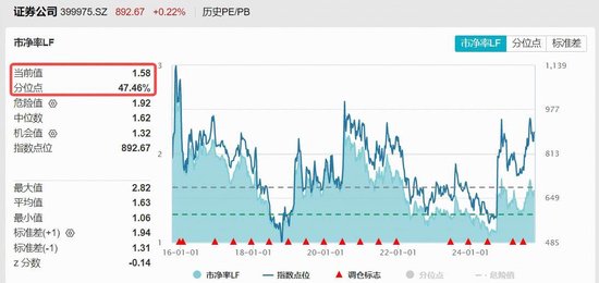 截至10月9日,券商ETF(512000)跟踪的市净率PB仅1.58倍,位于10年来47.46%分位点的中低区间,在牛市氛围下估值性价比凸显。