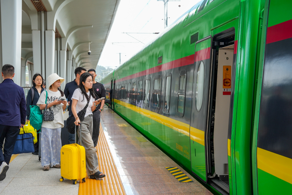 据统计,来自老挝、泰国、马来西亚、美国、英国等115个国家和地区的60万名游客搭乘跨境国际旅客列车旅行,与日俱增的客流带火了沿线景区、酒店、餐饮等旅游相关产业,加速了客流、物流、信息流的流动,为区域经济发展注入了强劲活力。