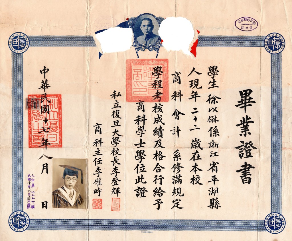 徐以楙入学这年,复旦商科由学年制改为学分制,学生修满132个学分就能毕业。他在自述中说,“当时学分制,凡总成绩超过八十五分的可多读功课。我只花了三年和一个暑期学校就算毕了业,得会计系商学士。”