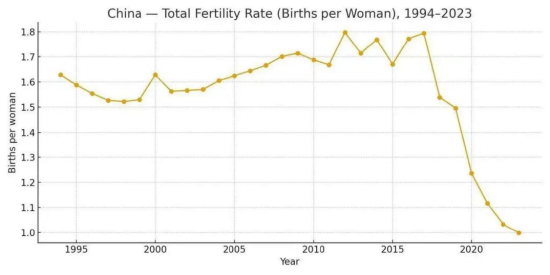 我们这几年生育率下滑的速度很快,从1.8掉到1以下用了不到10年。