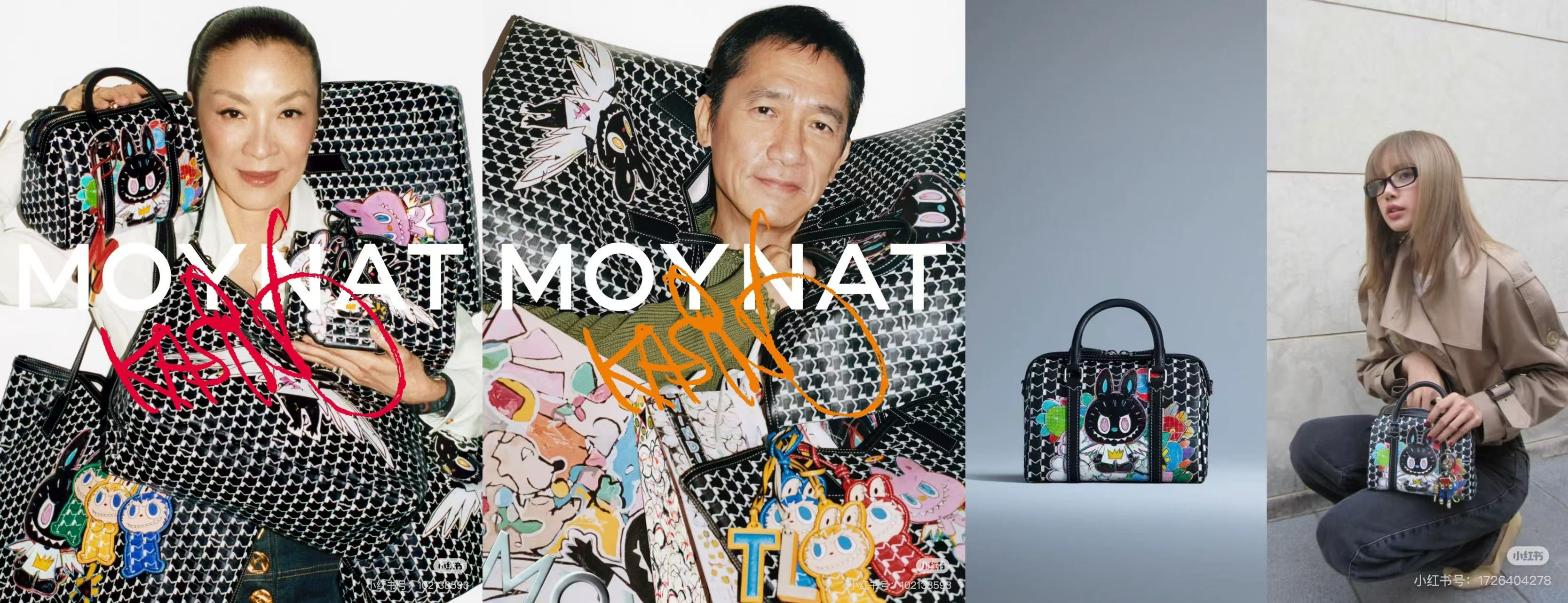 就与库克见面之前,龙家升还在上海参加了Moynat的晚宴。这个LVMH集团旗下奢侈品牌与LABUBU合作的产品也正式发售——印着LABUBU的Moynat包袋还出现在了梁朝伟、杨紫琼等更多明星拍摄的广告图中。早在今年9月,Lisa就已经在她的社交媒体发布了一张手拿印有LABUBU图案的Moynat品牌手袋的照片。