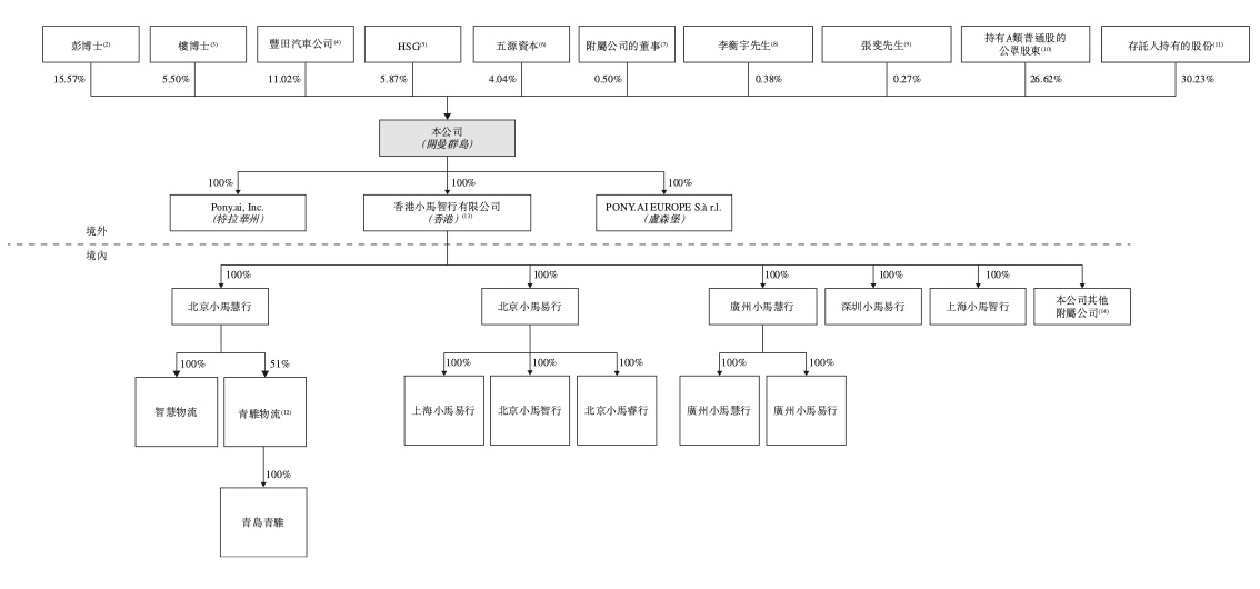 此外,招股书显示,港股上市前,小马智行联合创始人兼CEO彭军持股15.57%,联合创始人兼CTO楼天城持股5.5%;丰田持股11.02%,红杉中国持股5.87%,五源资本持股4.04%。