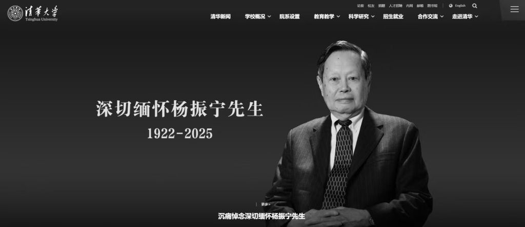 享誉世界的物理学家、诺贝尔物理学奖获得者,中国科学院院士,清华大学教授、清华大学高等研究院名誉院长杨振宁先生,因病于2025年10月18日12时00分在北京逝世,享年103岁。