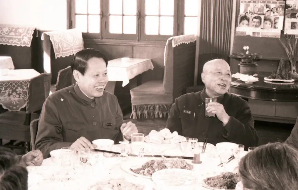 杨振宁与上海市科协第三届委员会主席谢希德在科学会堂
