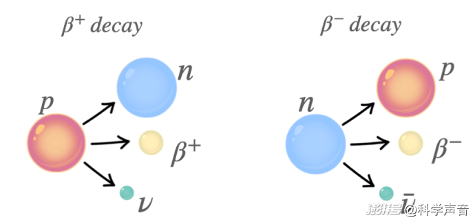 有一种弱相互作用叫做 衰变。什么是 衰变?1896 年,德国物理学家贝克勒尔发现了铀原子的放射性现象,92 号元素铀能够自发衰变成 82 号元素铅。接着,卢瑟福和汤姆孙在一年后发现,铀在衰变过程中会产生三种不同的放射线,准确地说,大自然中没有线,所有的线都是由粒子组成的。你可能想问,他们怎么知道是三种不同的粒子呢?这个原理其实很简单,就是让放射线通过一个磁场。然后他们就发现,在磁场中,放射线的偏转方向会不同,根据异性相吸的原理,也就知道了铀在衰变过程中,释放出带正电、负电和不带电的三种粒子。他们就把带正电的叫做 射线,带负电的叫做 射线,不带电的叫 射线,那么发出 射线的衰变过程就叫做 衰变。