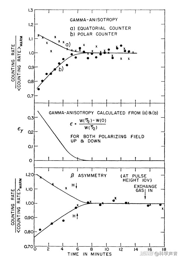 图:吴健雄在1957年发表的论文中给出的统计结果