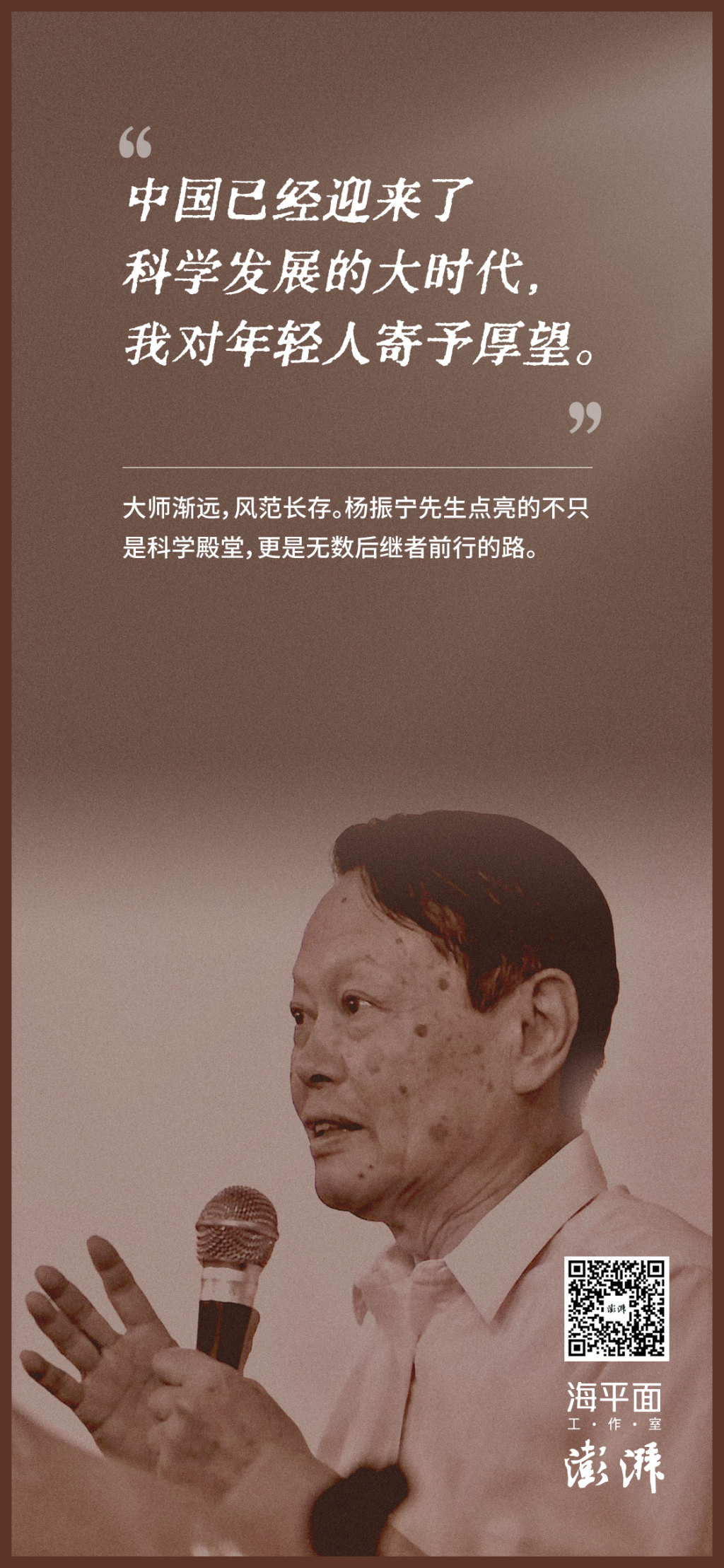 杨振宁先生百年人生,是一部用探索、热爱与家国信仰写就的史诗,一位科学巨擘与家国赤子的完美融合。