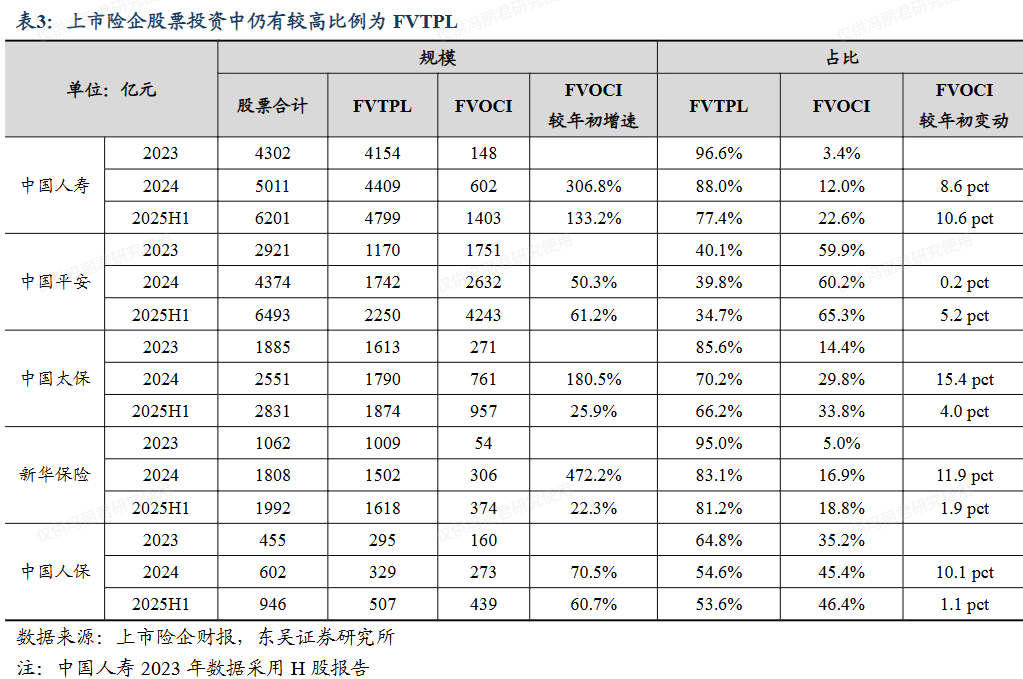 根据东吴证券数据,2025上半年五家A股上市险企股票归入FVTPL的占比中,(81.2%)、(77.4%)最高,(66.2%)、(53.6%)均超过五成,(34.7%)不到四成。