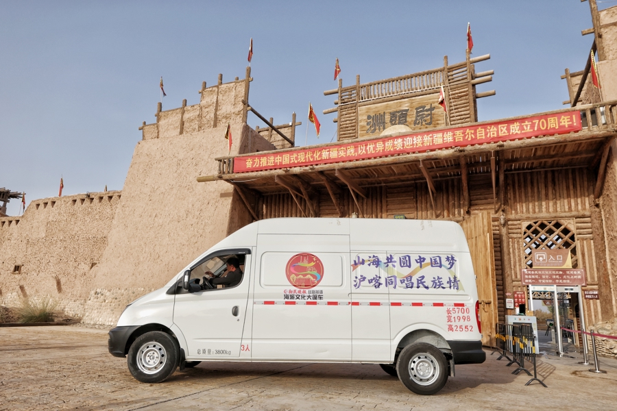 “山海同圆中国梦,沪喀同唱民族情。”10月21日上午11时30分许,新民晚报“丝路燕语海派文化大篷车”从尉头洲城门缓缓驶出,满载着上海人民的深情厚谊,奔赴一场与喀什的美丽约定。