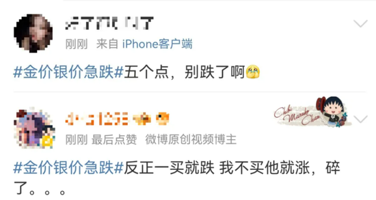在社交媒体上,不少买入黄金的网友心态“崩”了。