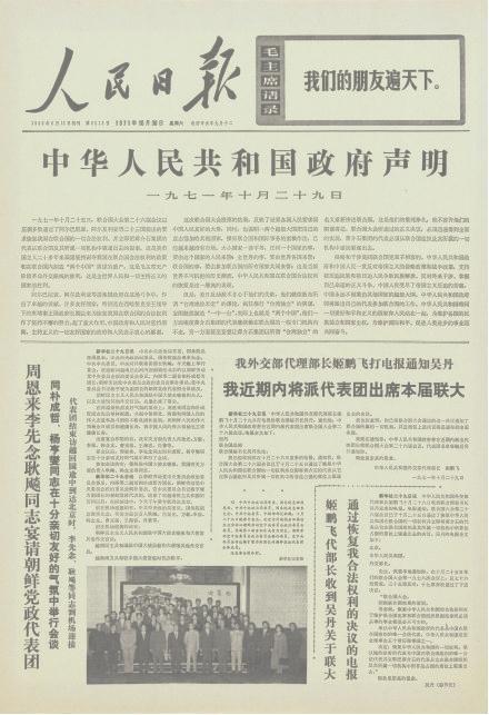1971年11月15日,中华人民共和国代表团首次出席联合国大会。