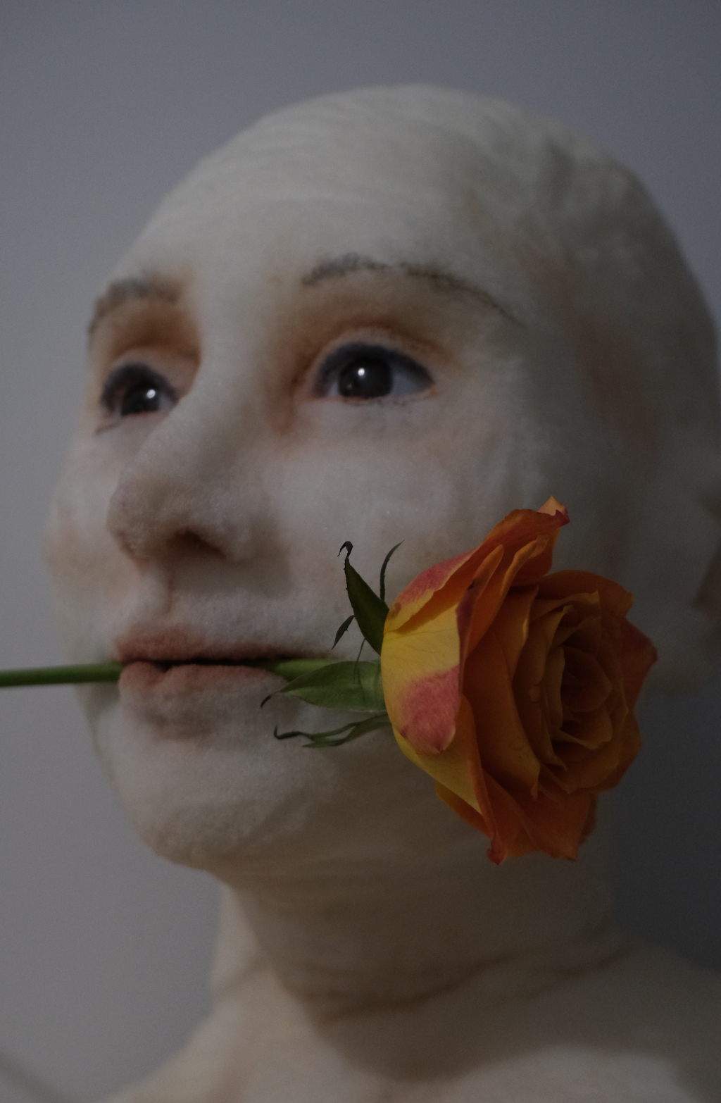 偶是绝对被动的,当人未将右手伸进它背后衣服里,未抓住它身体里的操纵机关,它只能以完全非人的形态蜷缩。当人未将手指插进偶头的机关里,它不会眨动双眼,也不会张合嘴巴。如果偶操纵者不说话,不行动,偶只能直直地站在操纵者身边,默默望着眼前的一切。它的一切都靠那个操纵者。如附体了一般,操纵者动起来,它也抖擞一下,活了过来,它讶异地四周看看,走路,转身,向操纵者要求更多行动的意义,更多故事的意义,更符合它的举止,比如,它的头顶到身体,本身有一个中轴,它不愿意,不能够做出非人的旋转。再比如,它的眼睛即使是最早期的油漆,或者后来的玻璃珠,再到现在的塑料,它的眼睛总是有聚焦的,它能在一个角度,与人对视,并在对视时唤醒人的情感,许多人受不了跟偶的对视。它就这样开始操纵人了。