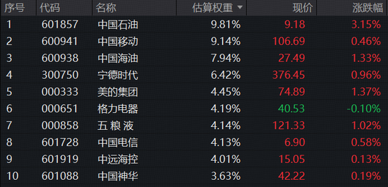 成份股方面,300现金流指数50只大盘蓝筹“现金牛”近八成收红,万亿市值巨头中国石油、、、等王者归来,震荡行情下频频托底护盘。、、、、等悉数收红。下跌方面,、、跌逾1%居前。