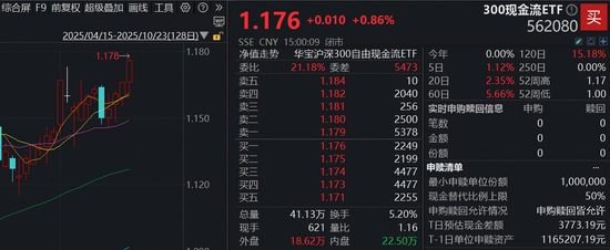 ETF方面,全市场首只上市的300现金流ETF(562080)被动跟踪300现金流指数,一键布局沪深300核心资产中的“现金奶牛”,今日收涨0.86%强势站上五日均线,收于1.176元,K线录得四连阳!值得注意的是,“562080”自4月15日上市的半年来,7根月线全部收阳,慢牛行情下成为市场稀缺的“能攻善守型高光选手”。