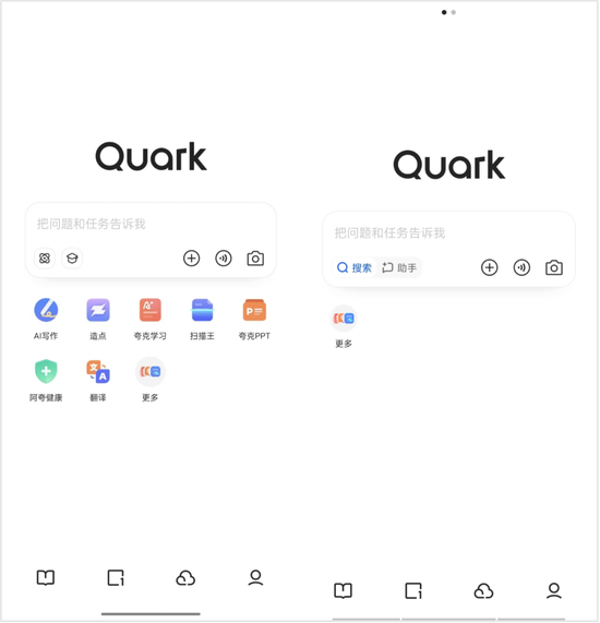 原本分散在搜索框下的众多功能被重新整合,界面更加清爽。而当你右滑或点击助手模式,便会开启一个全新的对话界面。