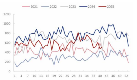 进口看,2025年9月受国内煤炭供需失衡,叠加进口煤价格占优,进口量环比上升,但10月以来相关推动弱化,进口量展露颓势。据Mysteel数据,2025年10月前二周全球发往中国煤炭的发运量为985.39万吨,环比9月同期降14.4%,去年10月同期总发运为1749.32万吨,同比降43.7%。