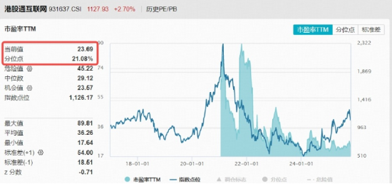 同时互联网板块估值更低,中证港股通互联网指数最新市盈率PE仅23.69倍,位于近10年21.08%分位点的中低位水平,不仅显著优于美股、A股科技,比同期恒生科技市盈率历史分位(25.37%)还要低。