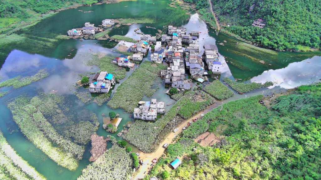 当地为喀斯特地貌,一些村庄位于洼地,四面环山,形如“锅底”,地下河密布。往年逢强降雨,位于“锅底”的村庄便容易积水,但凭借溶洞渗排等,积水很快退去。然而这一次,洪水迟迟未退。