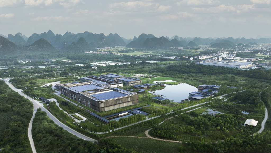 园区建造需与桂林山水的自然风貌融合,如何将环境压力转化为创新动力?孙大勇认为,不应将绿化作为工厂建设的附属,而是要让现代工业“隐藏”在园林之中。“我们相信,越是在这种环境下,越能激发企业更有前瞻性的解决方案。”