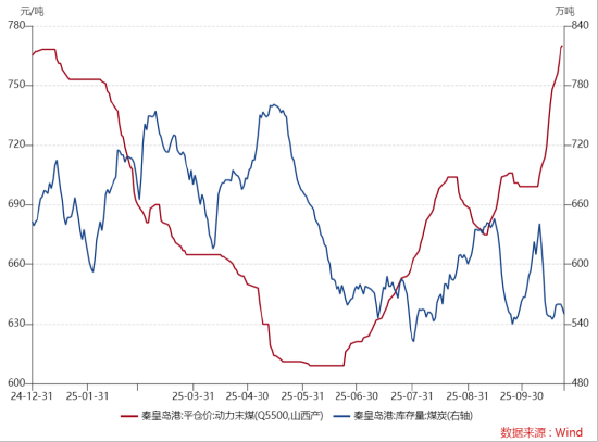 短期来看,近期动力煤现货价格上涨加速,社会面去库继续推进,叠加冬储在即影响,对煤炭行业近端业绩提供支撑。近期动力煤现货价格持续回升,环渤海5500K煤价较6月低点大幅反弹。社会库存加速去化,秦港库存较年中下降30%,电厂采购策略转向现货市场。叠加近期安监趋严,山西、陕西等地供应收缩,而冬储需求逐步启动形成供需共振。受多方面积极因素影响,煤炭行业近期业绩存在一定的边际修复空间。