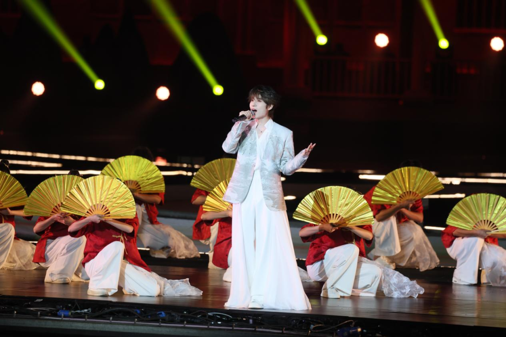 在舞台呈现上,晚会依托实景舞台,化用水景、园林等自然元素,形成“人入画中、戏在景中”的沉浸观感,灯光舞美也取写意笔法,融传统美学于现代视觉,营造出虚实相生、中西合璧的诗意空间。