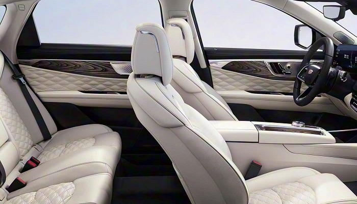 内饰布局整体未变,但中控屏幕尺寸调整为15.6英寸,并支持2.5K分辨率,搭载了第三代Coffee OS车机系统。换挡机构改为怀挡设计,为中央通道区域腾出了更多空间。智享版车型的配置亮点包括Nappa真皮座椅、前排座椅加热通风、主驾驶按摩功能、后排娱乐屏以及车载冰箱等。