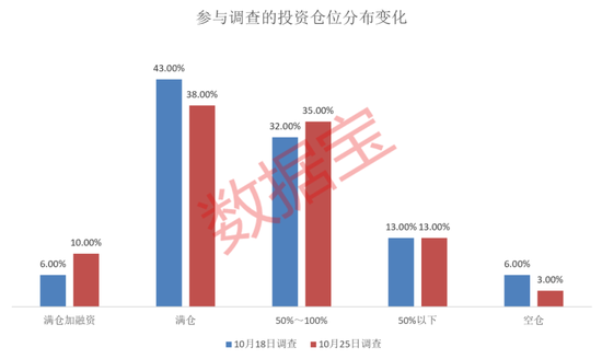 从仓位变化来看,本周29%的受访者进行了“加仓”;17%的受访者进行了“减仓”;3%的受访者进行了“清仓”操作;其余51%持仓不动。