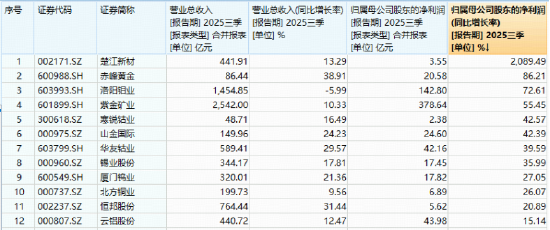 图:有色龙头ETF三季报归母净利同比两位数增长的成份股