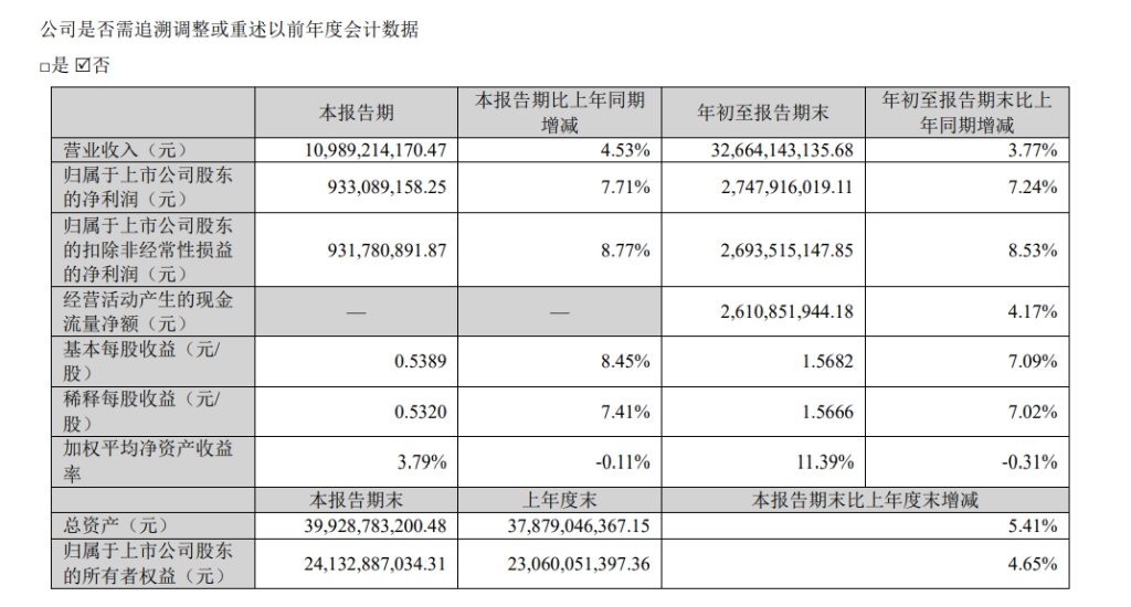 10月27日晚间,华东医药(000963.SZ)发布2025年三季报。报告显示,2025年前三季度合计实现营业收入326.64亿元,同比增长3.77%;实现归母净利润27.48亿元,同比增长7.24%,实现扣非归母净利润26.94亿元,同比增长8.53%。单独看第三季度,期内营业收入109.89亿元,同比增长4.53%;归母净利润9.33亿元,同比增长7.71%;归母扣非净利润9.32亿元,同比增长8.77%。