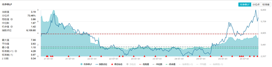 半导体、消费电子和计算机软件混到一起,就只能看PB市净率了,目前大概是3.2倍,处于近5年维度的70%分位值。