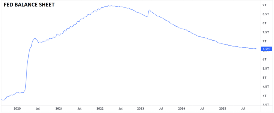 本月FOMC会议的关键爆发点将是央行是否宣布结束量化紧缩(QT)计划。量化紧缩与量化宽松(QE)本质上相反,量化紧缩指的是央行允许某些债务持有到期和结清,从而缩小其资产负债表规模。