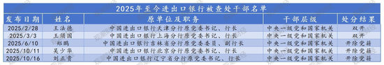 进出口银行有2位干部被“双开”,分别为天津分行原行长王法德;上海分行原行长王须国。3位干部被开除党籍,分别为吉林省分行原副行长郑鹏、北京分行原行长吴少华、辽宁省分行原行长刘正贵。