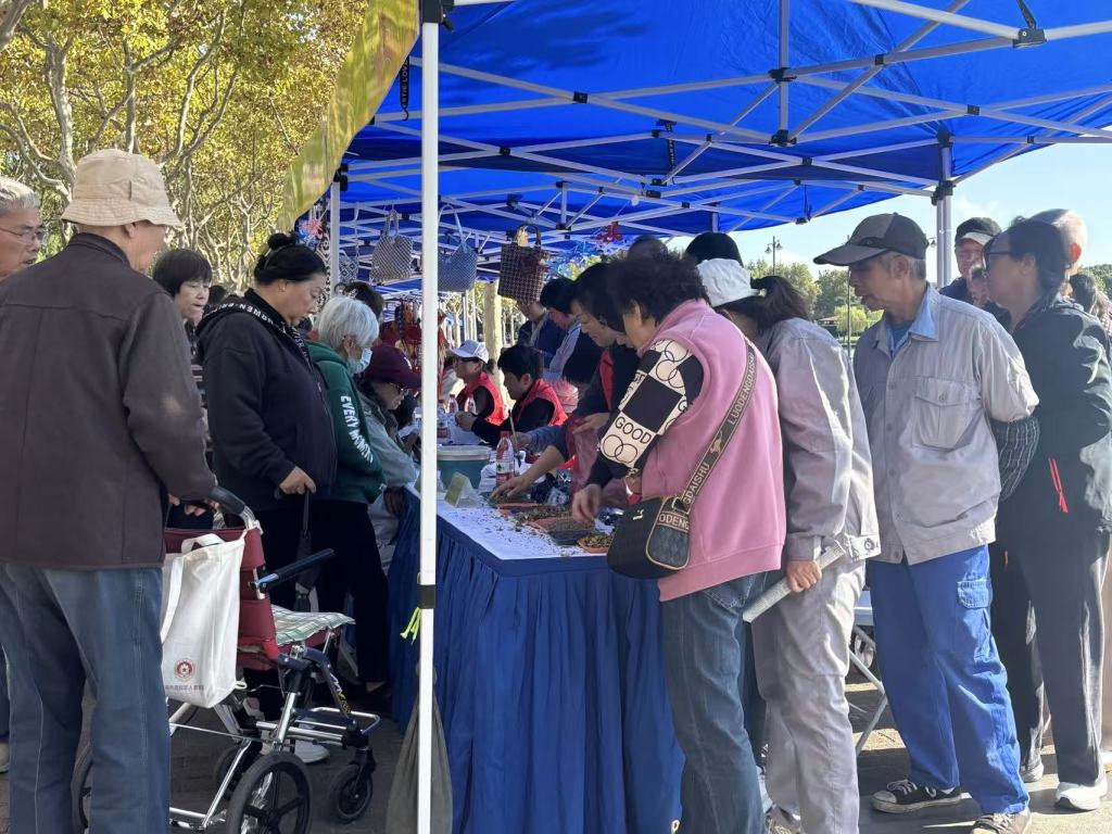 10月29日是重阳节,在上海世纪公园的一场“大集”,老年人呼朋引伴而来。当日,非遗体验区收获了极大的关注度,老人们从剪纸、面塑、草编、龙凤字、中国结、吹糖人、人像剪影、人像漫画、香包等摊位“挤”出来,人手一个“免费伴手礼”,看着颇为热闹。