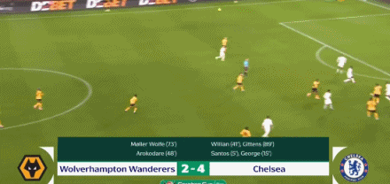 第41分钟,狼队后卫费尔洛佩斯“送礼”,埃斯特旺挑射为切尔西再进一球,半场结束,切尔西以3比0狼队。