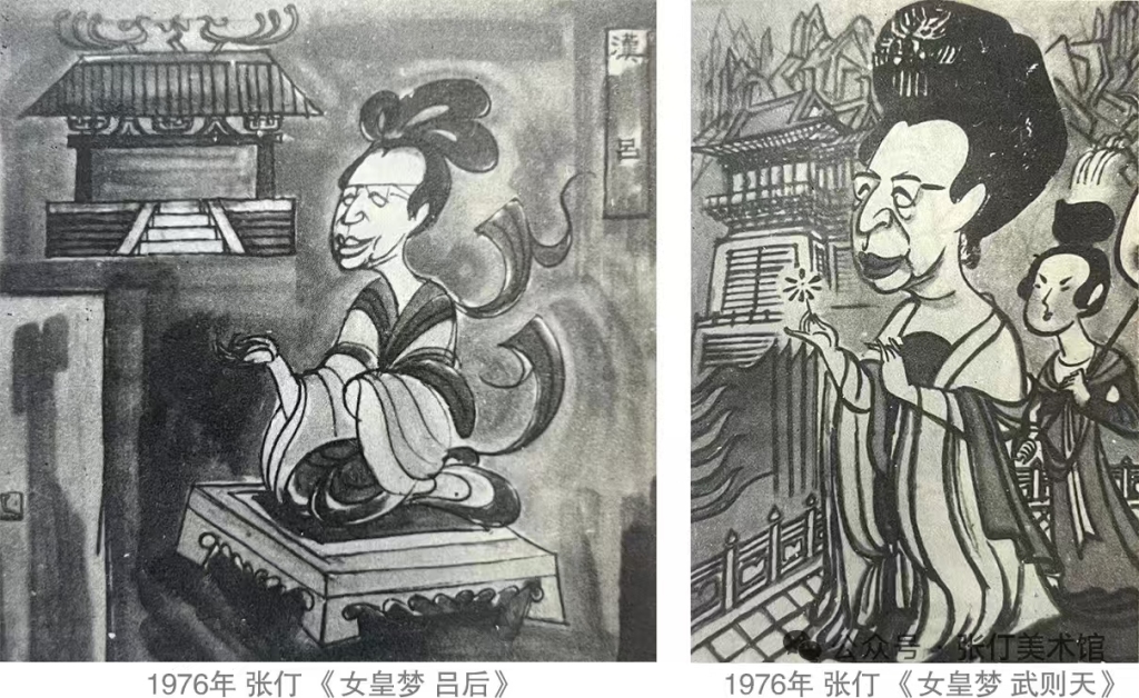 左:张仃漫画《女皇梦吕后》 右:张仃漫画 《女皇梦武则天》