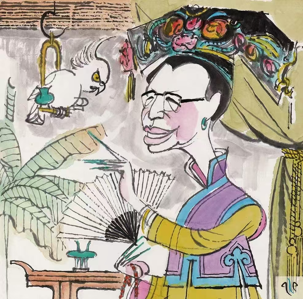 韩羽极赞张仃的好胃口,其实,自己的胃口又何尝不好。否则,又如何能在诗文书法、漫画插图、电影卡通、戏曲人物画等众多领域纵横驰骋,成绩斐然?不过,韩羽的好胃口,笔者以为更多表现于“文”上。他的博览群书,他的古典学养,尤其是“故事新编”的能力,当今画坛衮衮诸公几人能及?张、韩不同的好胃口,孕育不同的艺术之果,如果说张仃是写生通灵,画眼含情,巧夺造化之功,韩羽则是读书养气,文心催画,寥寥数笔含纳大千古今,可谓“各还命脉各精神”。