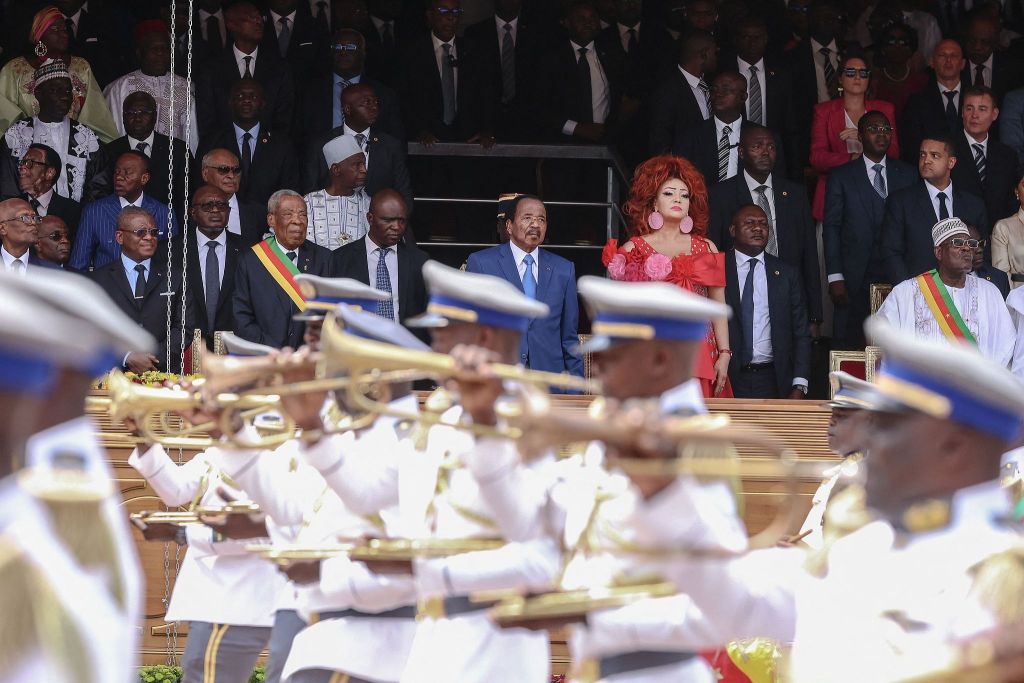 当地时间2024年5月20日,喀麦隆雅温得,喀麦隆总统保罗比亚(中左)和妻子尚塔尔比亚(中右)参加第52届国庆庆祝活动。视觉中国 图