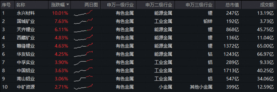 图:有色龙头ETF标的指数涨幅前十大成份股