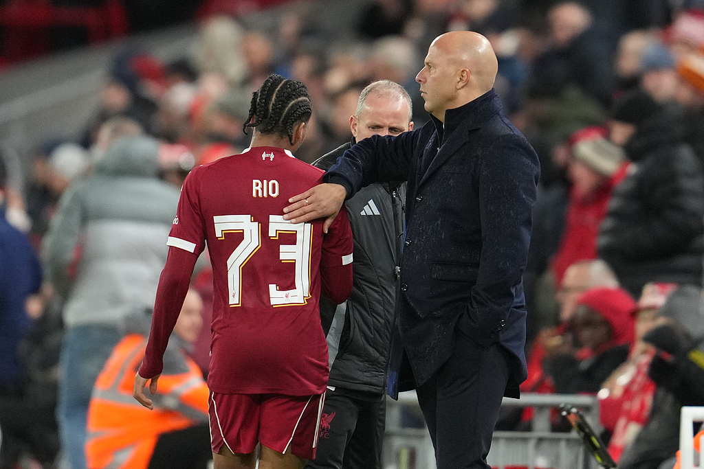 利物浦首发11人中,只有1人踢了上轮英超,替补席上的9名球员也全部是21岁以下的年轻人,其中6人此前从未代表一线队出场,只有麦卡利斯特和凯尔凯兹算是主力,球队操持的,是荷兰人上任以来从未使用过的541,身高不到1米8的远藤航和罗伯逊担任中卫,妥妥的草台班子。