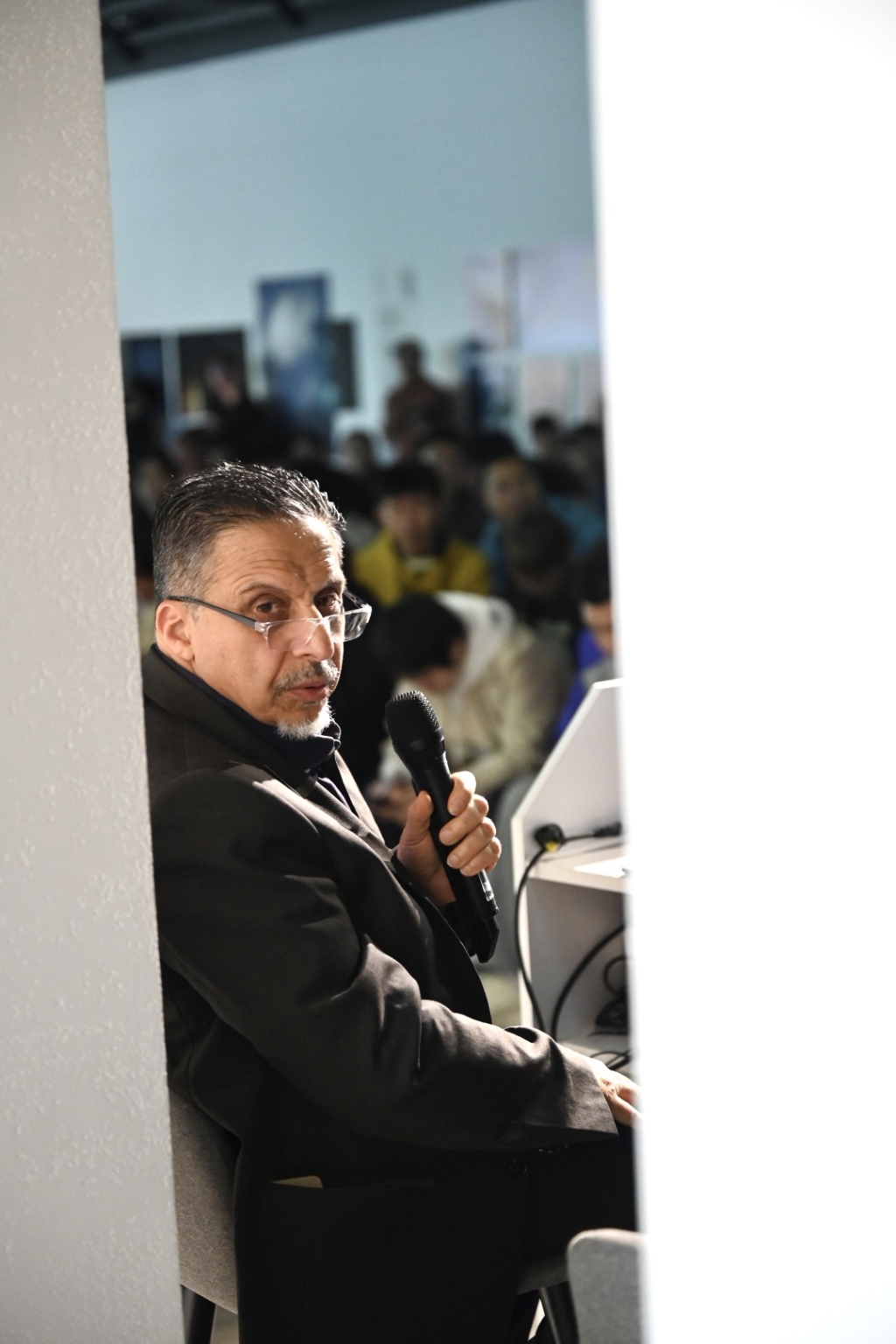 2025年10月26日,平卡索夫正在分享他的摄影作品与摄影观念。澎湃新闻记者 吴栋 图