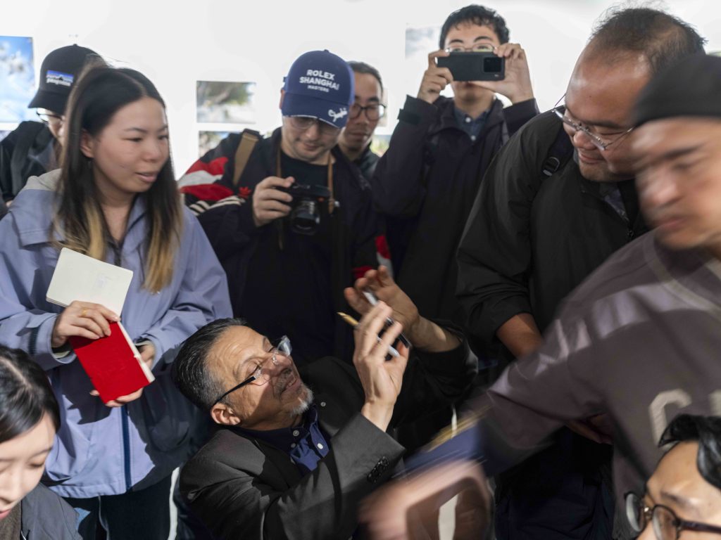 2025年10月26日,平卡索夫在给观众签名时不忘使用手机拍摄他们。澎湃新闻记者 许海峰 图