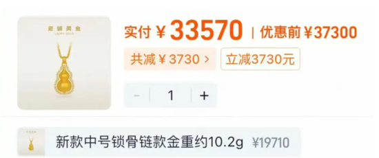10月26日,老铺黄金正式涨价。老铺黄金官方旗舰店上约8克的花丝珐琅蝴蝶锁骨链,售价从17010元涨到19044元,涨幅12%;约18克的葫芦吊坠(金链款),售价从30000元涨到33570元,涨幅12%。