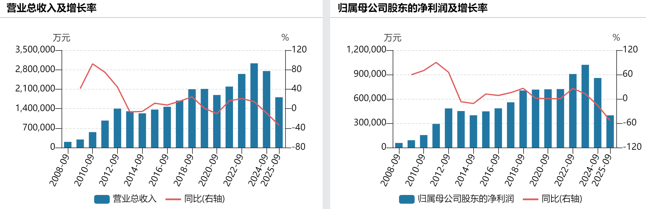 当前白酒行业仍处于深度调整期。国家统计局数据显示,2025年1-9月全国规模以上白酒企业产量为265.50万千升,同比下降9.90%。从已披露的三季报来看,多家白酒上市公司第三季度业绩出现明显下滑。