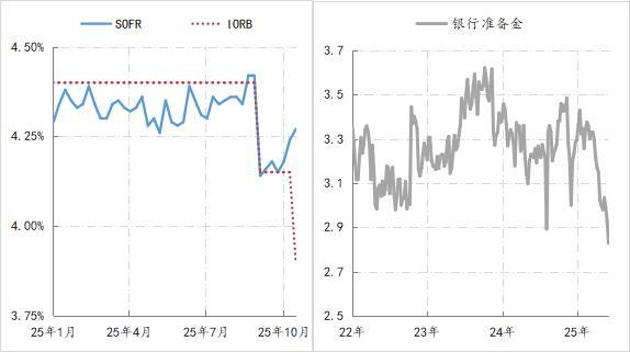 首先,美元流动性紧张的警报已经解除。9月份以来,美元担保隔夜融资利率(SOFR)就持续高于美元利率走廊上限——准备金利率(IORB),目前SOFR为4.27%,IORB为3.9%,隔夜利率超出走廊上线的幅度已接近40BPs,且市场对美联储流动性的需求也在持续增多,反映出美元流动性有持续紧张的趋势。