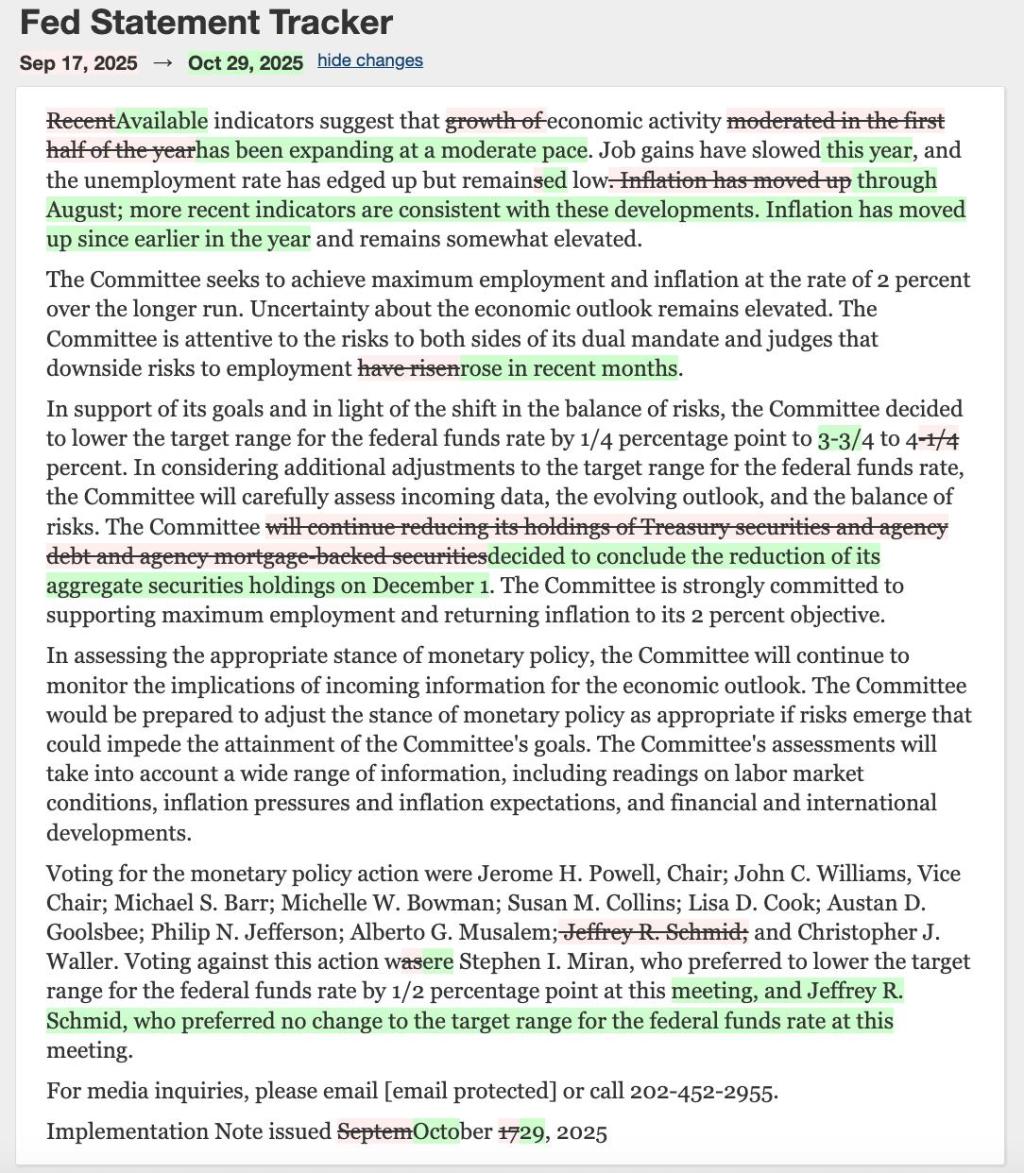 美联储10月会议公告措辞的变化情况 资料来源:美联储